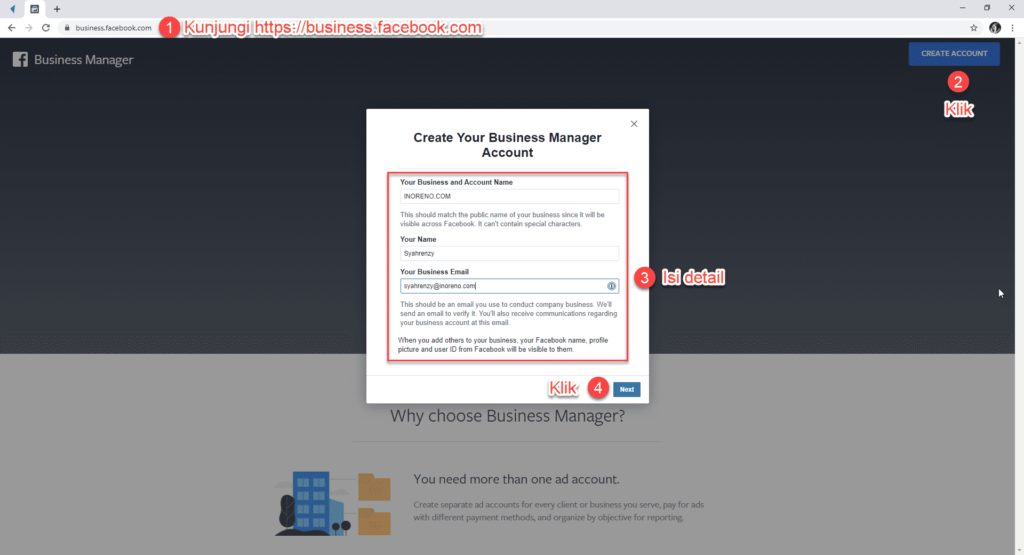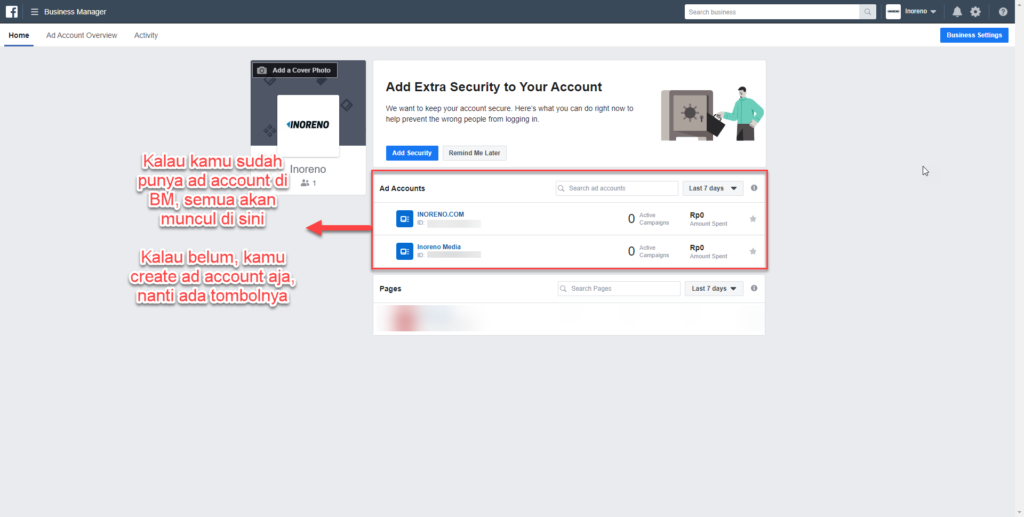 Kunjungi business manager kemudian ikuti langkah di bawah
