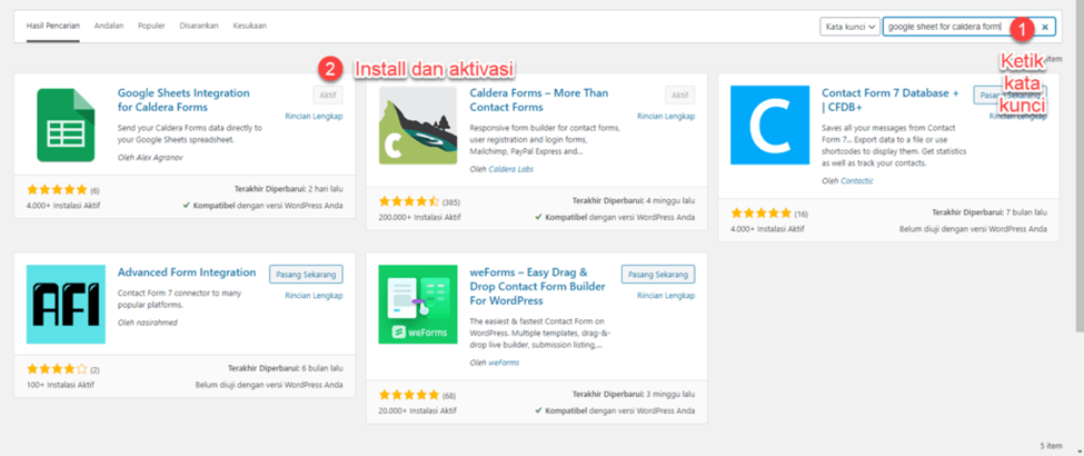 Install dan Aktivasi Plug-In Google Sheet For Caldera Form