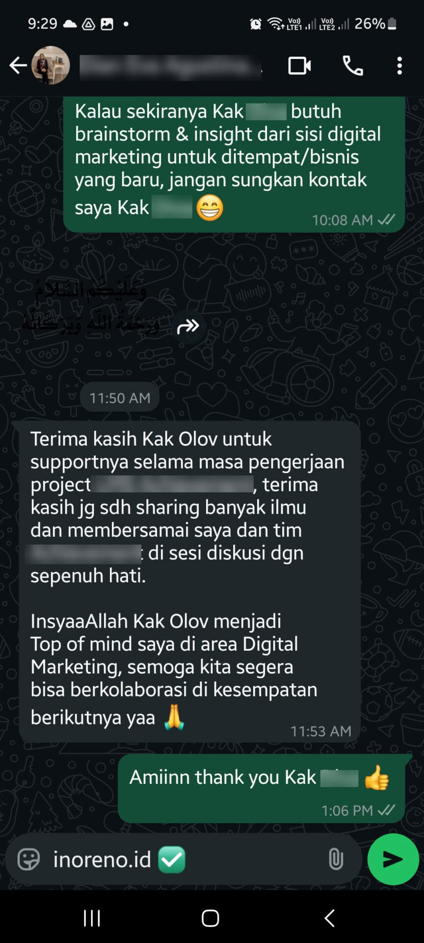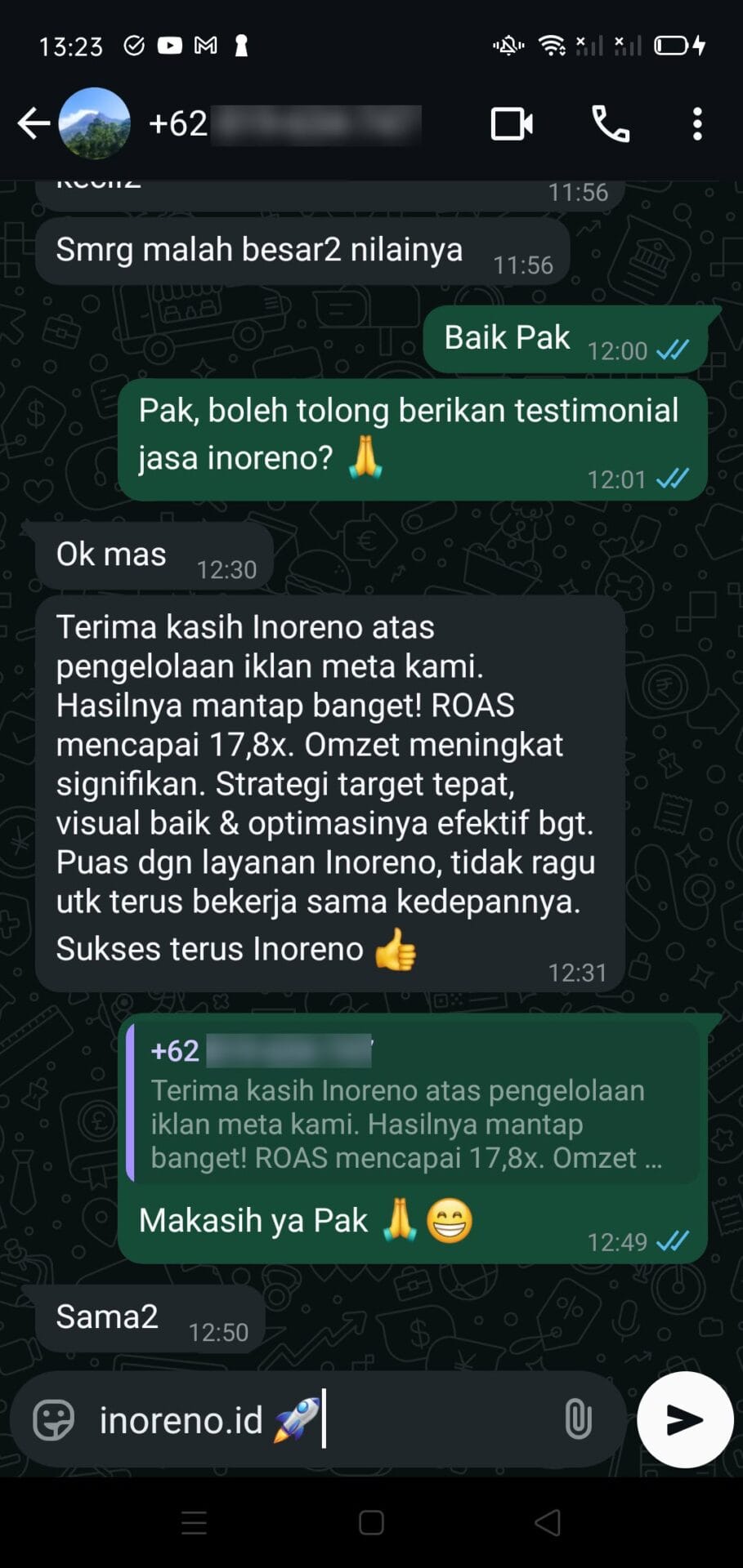 Kerjain sendiri = ROAS single digit. Dengan inoreno ROAS double digit. Siapa tau produk kamu yang selanjutnya..